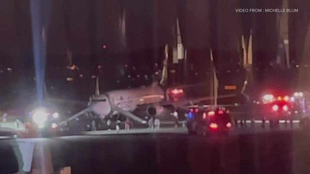 Airport emergency response personnel evaluated three people after the Embraer 175 jet landed safely. One person was transported to a local hospital for treatment. The airline said the passenger who owned the device received medical attention after the aircraft returned to the gate.
