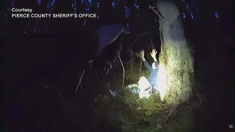 Deputies say Pierce County Park employees called 911 around 7:15 p.m. and reported a man was threatening to kill people. Police dog Coda and his handler quickly responded to search for the suspect. The K-9 found the man hiding in some brush near a walking path.