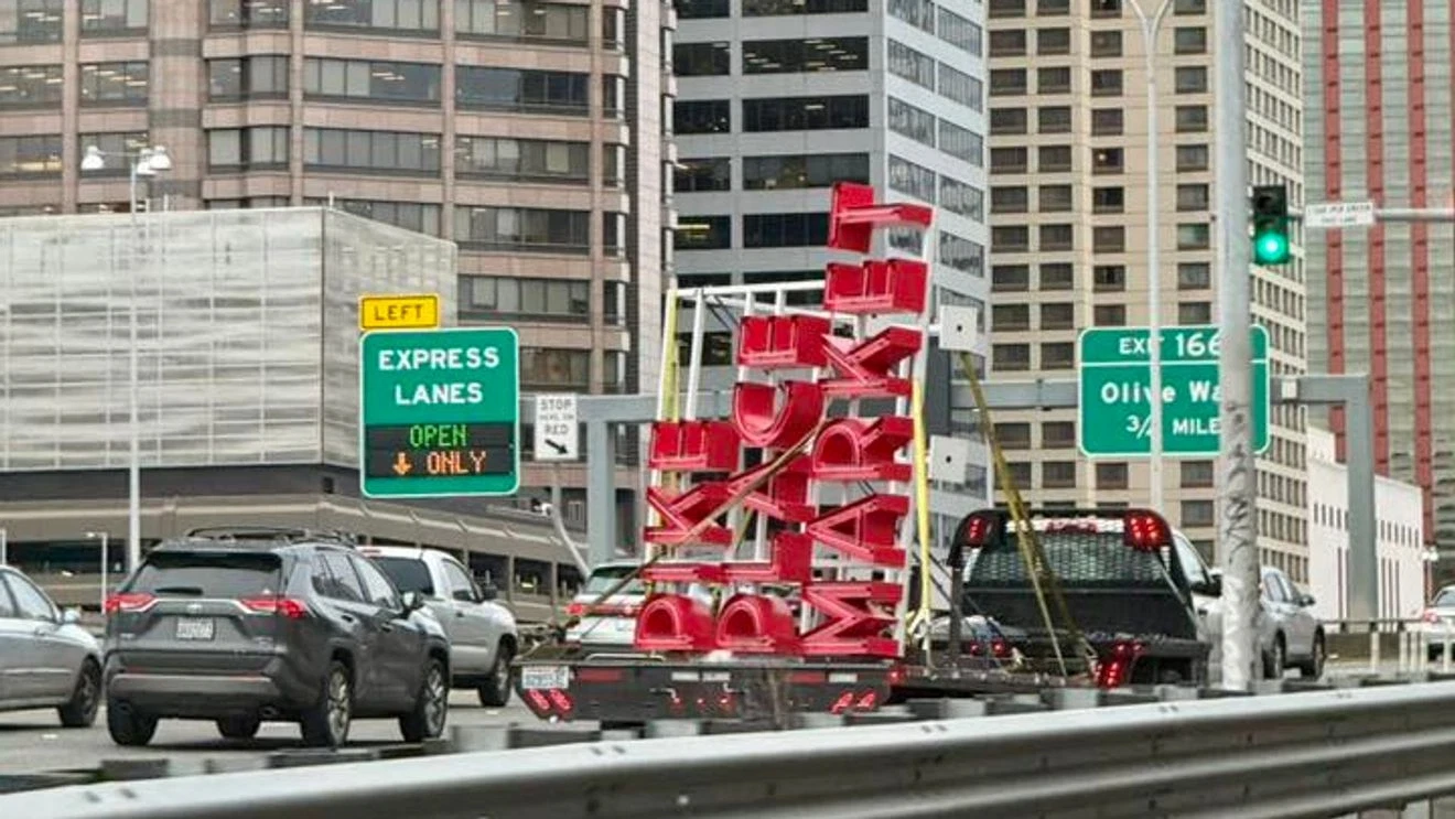 Seattle residents spotted the sign being transported on the freeway Thursday morning before it was installed later that day. The sign stands 16 feet tall and is mounted almost six stories high on one of the Market’s elevators, making it visible to drivers, ferry riders, and visitors along the Waterfront.