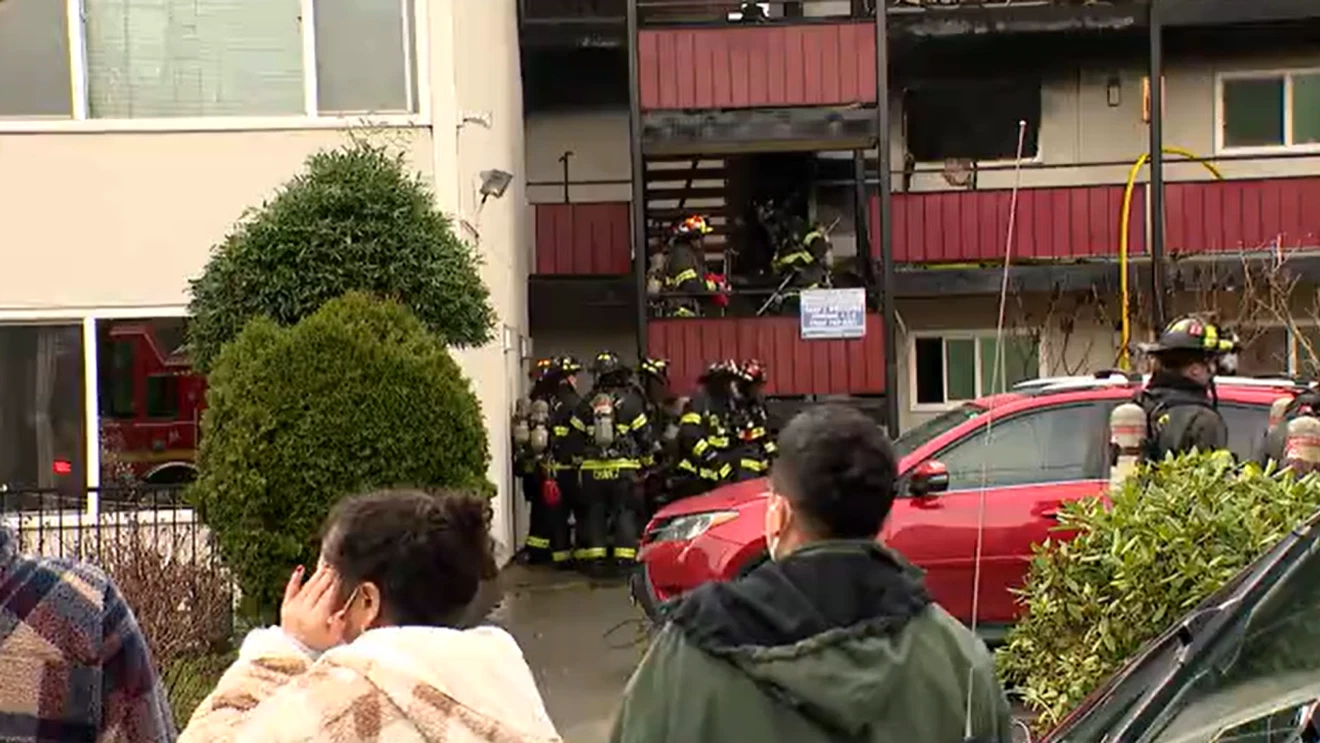 A two-alarm fire erupted on the 1700 block of 13th Avenue S in Seattle just before noon Sunday, forcing evacuations from a 15-unit apartment building where firefighters rescued an 87-year-old woman who was taken to Harborview Medical Center in stable condition. One firefighter suffered minor injuries and was also hospitalized. But the response, which brought the fire under control shortly before 1 p.m., drew criticism from residents who claimed crews took longer than 15 minutes to arrive, time that one resident says cost the lives of her two cats. The fire started on the second floor and quickly spread to the third floor, prompting the Seattle Fire Department to upgrade to a two-alarm response. At least two units suffered heavy damage while investigators work to determine the cause and total extent of damage.