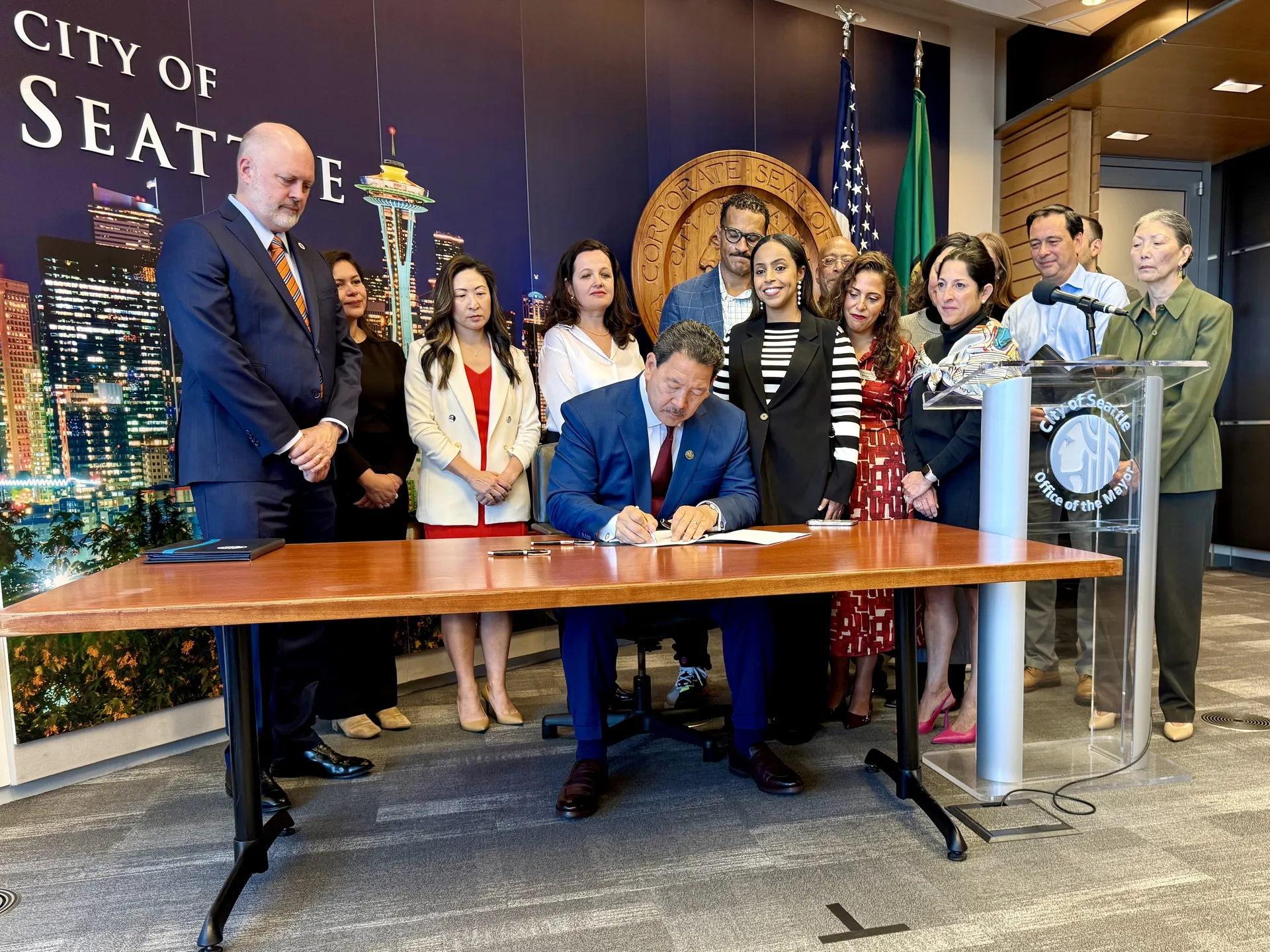 Seattle Mayor Bruce Harrell signed two executive orders Wednesday addressing President Trump’s federal immigration policies and potential troop deployment in U.S. cities.