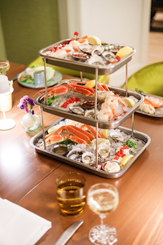 At the center of the experience is a raw shellfish bar, showcasing pristine Pacific Northwest oysters, clams, prawns, and crab—served simply and at peak freshness. The carefully curated offerings are sourced from the region’s top sustainable local fishermen and shellfish farmers.