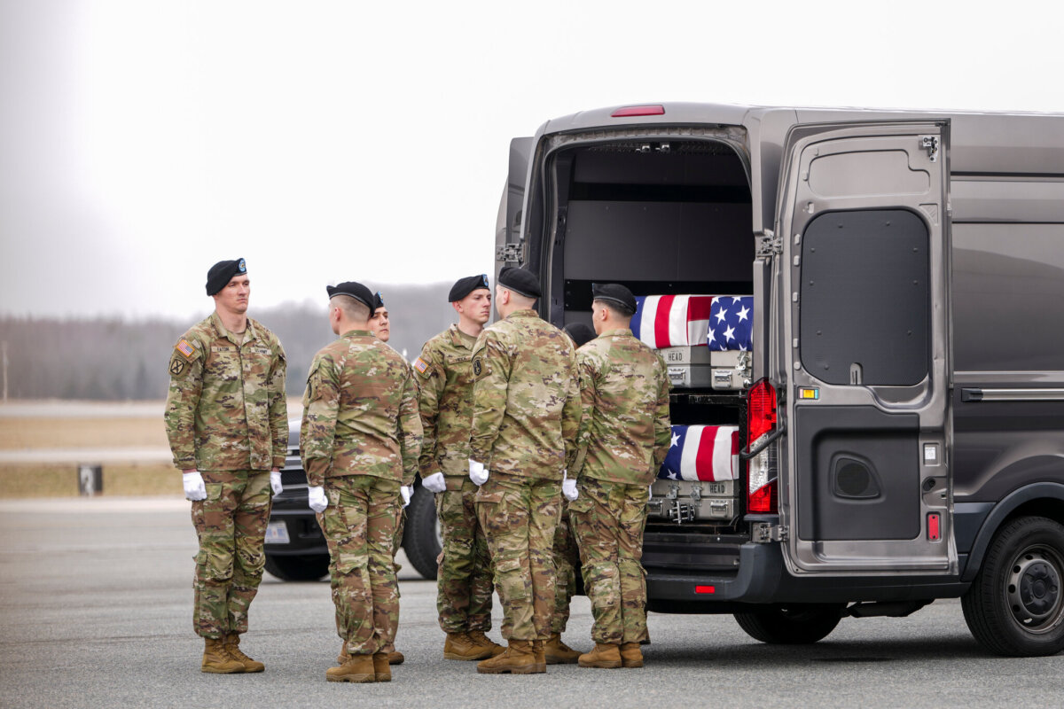 Six Army Reserve soldiers killed by a drone strike at a command center in Kuwait, the day after the U.S. and Israel started their military campaign against Iran, returned home on Saturday. President Donald Trump joined the grieving families at Dover Air Force Base to honor the soldiers during a dignified transfer.