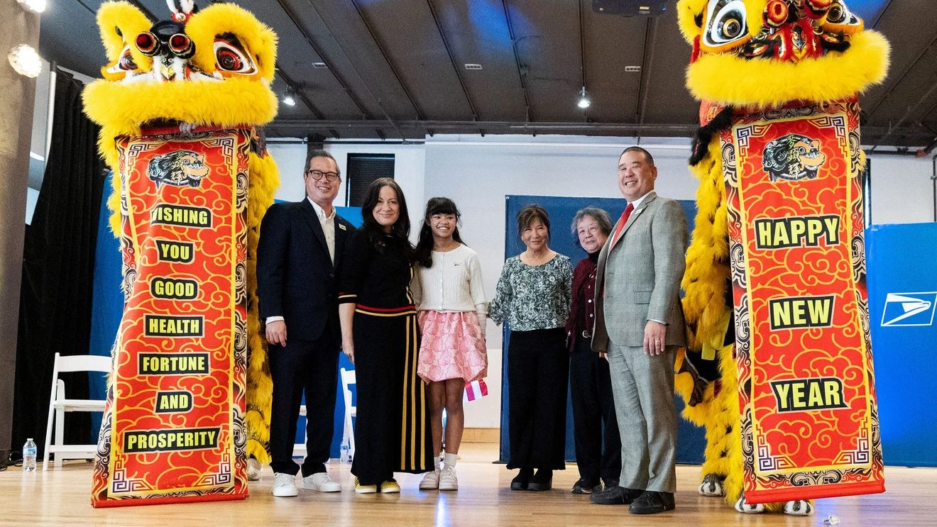 The U.S. Postal Service unveiled a new Forever stamp honoring Chinese American martial artist and actor Bruce Lee on Wednesday, featuring an image of his iconic flying kick.