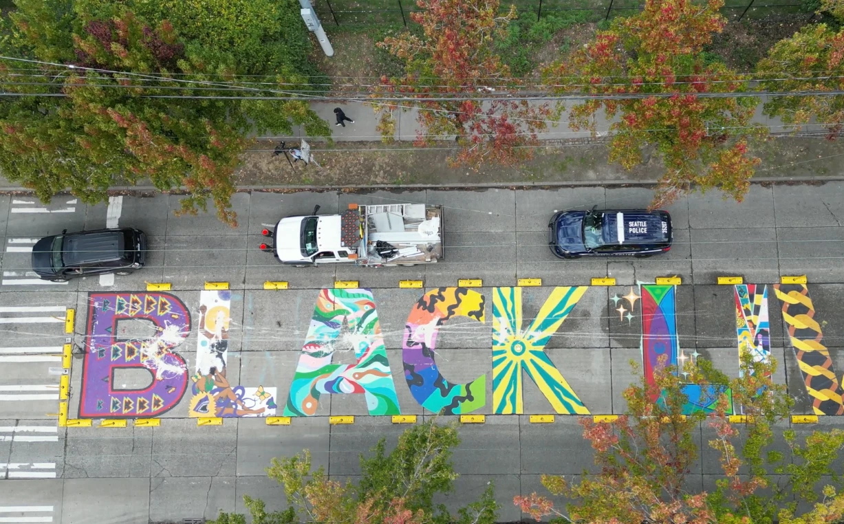 SDOT provided this statement: “We’re working closely with Vivid Matter Collective to restore the artwork as soon as possible. The artists were onsite today to assess the damage, and our crews are coordinating cleanup efforts that will include hydro-blasting and pressure washing to remove the paint. SDOT remains committed to preserving this important piece of public art and ensuring it continues to be a space of pride and reflection for the community.”