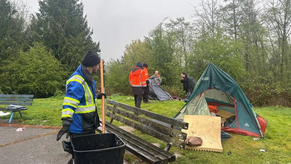 The removal stretched from the West Seattle Golf Course up the hill along 35th Avenue SW, with police officers standing by as cleanup crews gathered belongings left behind and loaded them into trucks. The operation came roughly a month after the violent attack near Rotary Viewpoint Park in late March, in which suspects sprayed a fire extinguisher to force three men out of their tent before beating them with a crowbar, a wrench, and the fire extinguisher cylinder. All three victims sustained head wounds, and two were left in critical condition.