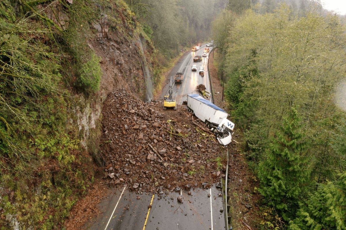 Several significant landslides and erosion events have already occurred near state highways. A substantial slide near milepost 36 on Interstate 90 prompted the Washington State Department of Transportation to close two eastbound lanes. The south fork of the Snoqualmie River running high below appears to have contributed to erosion undermining the hillside.